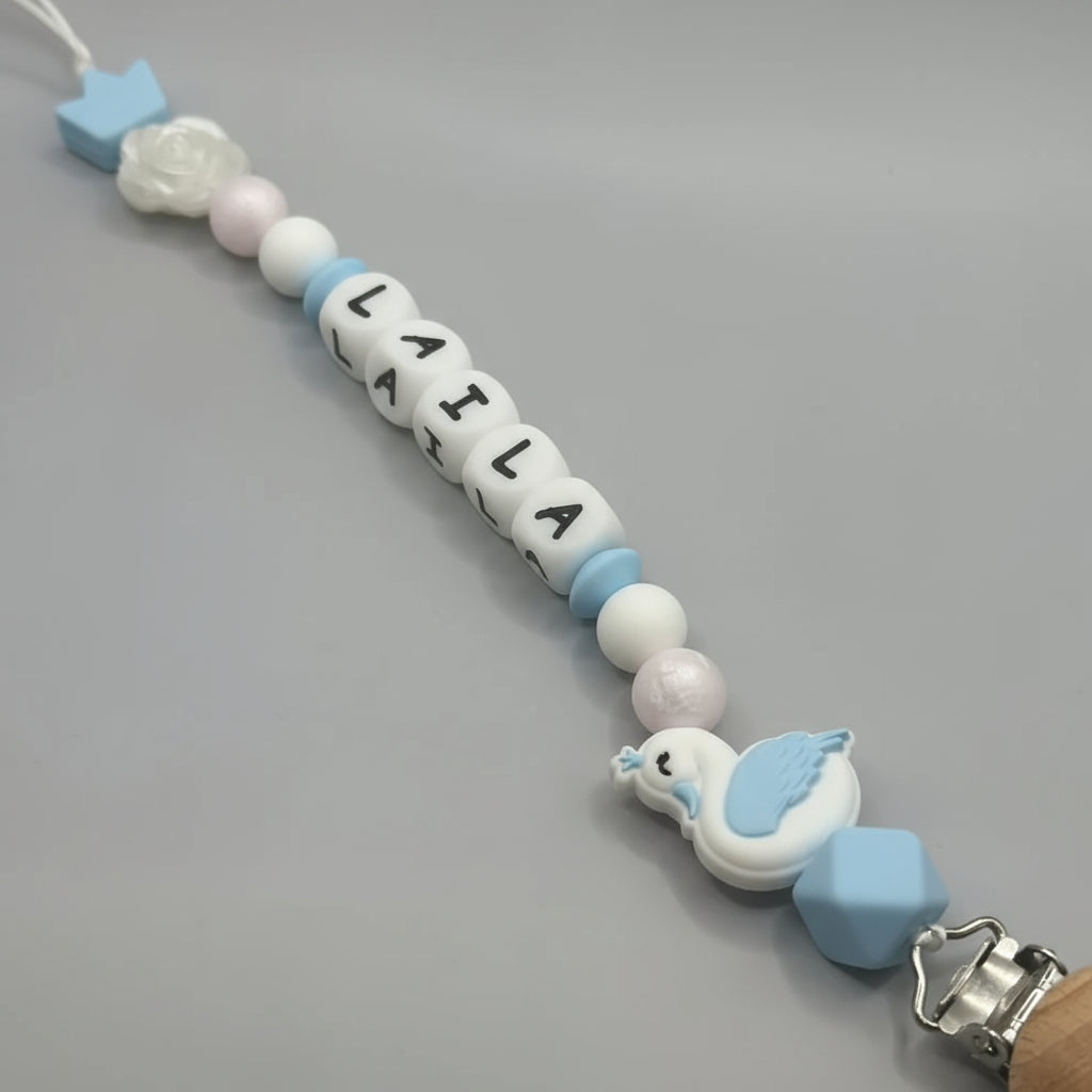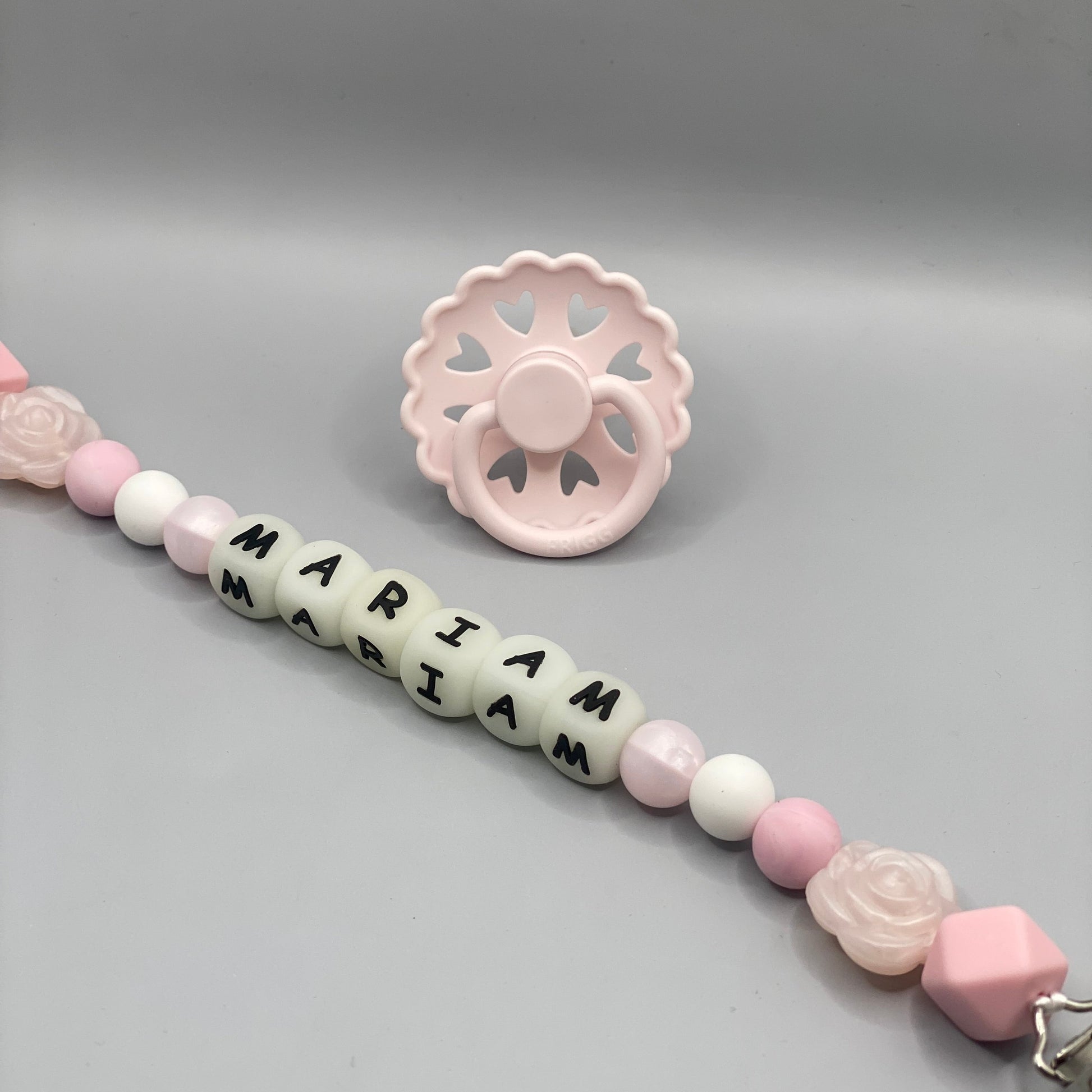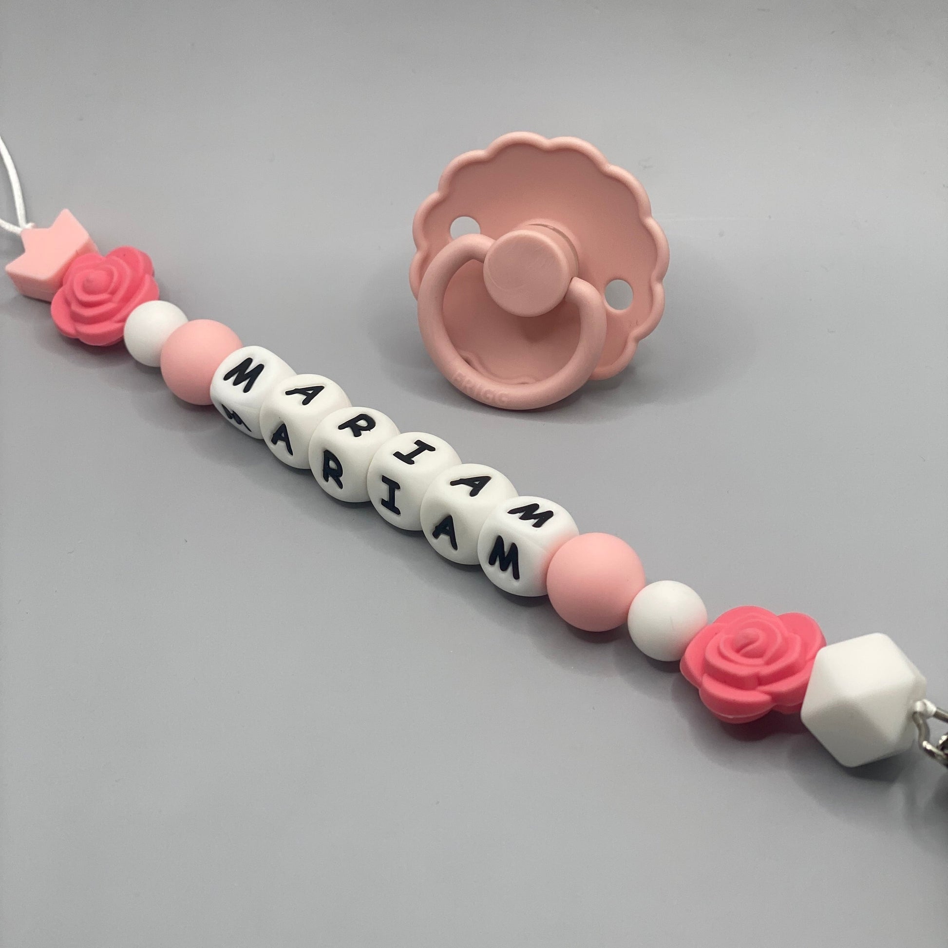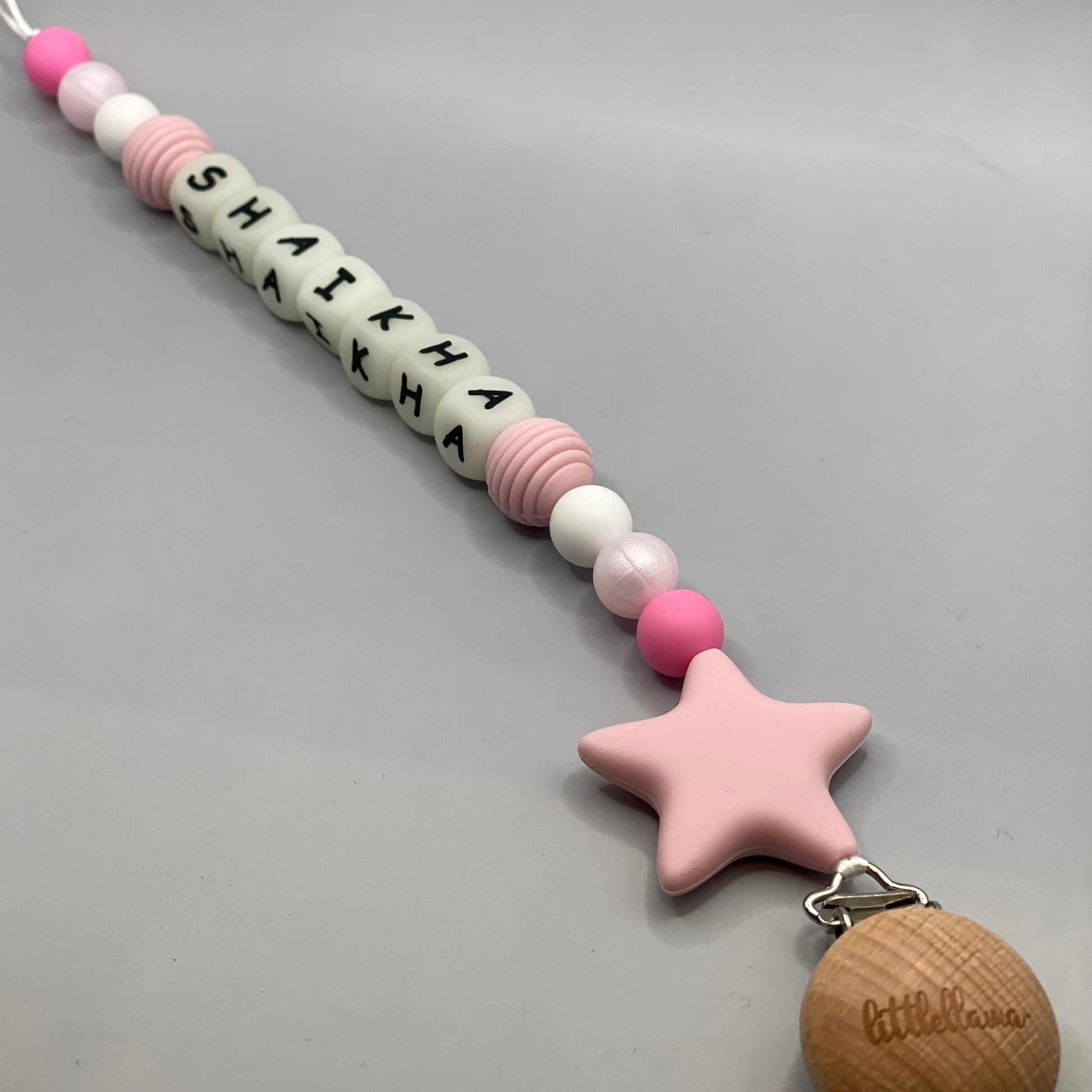 قم بتخصيص مشبك اللهاية الخاص بك باسم طفلك. يمكن ربط طرف الحلقة باللهاية أو عضاضة الأسنان أو كوب الوجبات الخفيفة والمزيد! يمكنك أيضًا تقديم هدايا مثالية للأطفال!