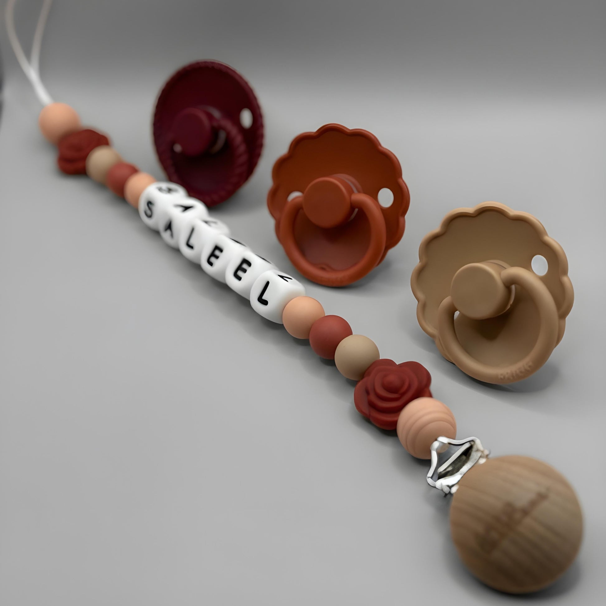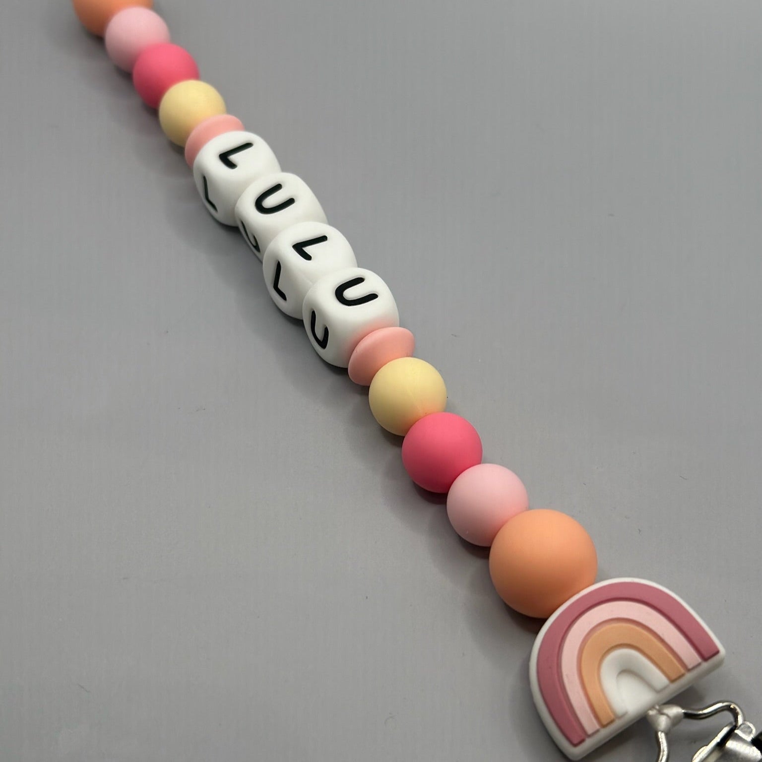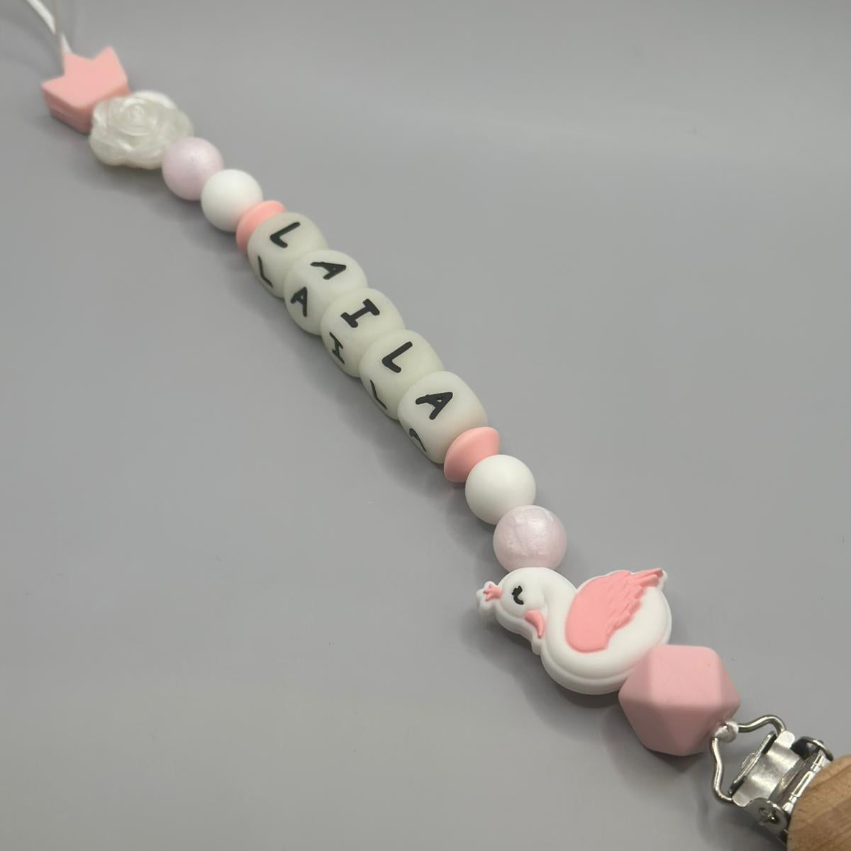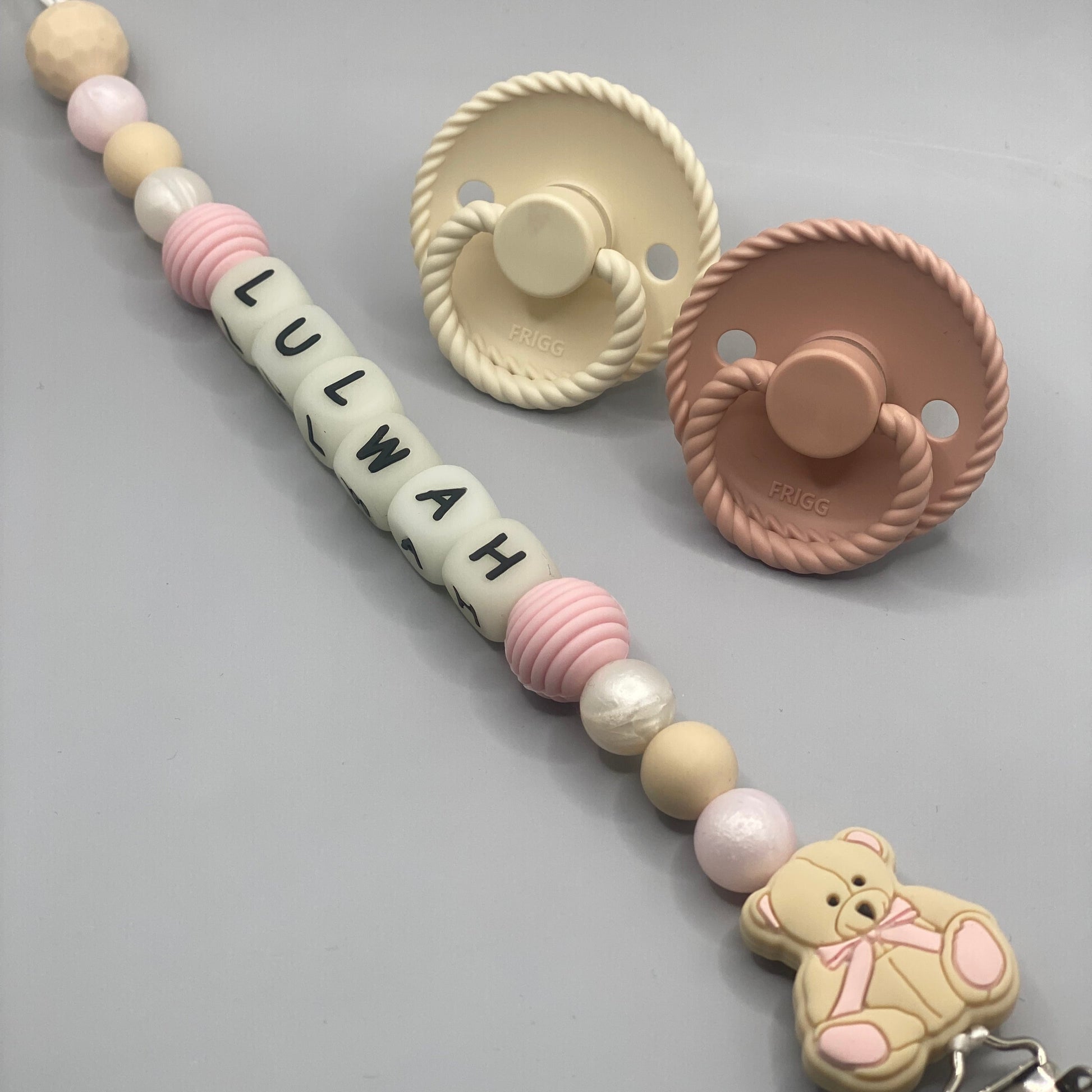 قم بتخصيص مشبك اللهاية الخاص بك باسم طفلك. يمكن ربط طرف الحلقة باللهاية أو عضاضة الأسنان أو كوب الوجبات الخفيفة والمزيد! يمكنك أيضًا تقديم هدايا مثالية للأطفال!